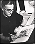 | After the war he approached his art with renewed enthusiasm and published a pencil postcard series of Vancouver Island scenes that met with great success. In 1945 he purchased a beautiful home, Inchgarth, on Wilmot Place in Oak Bay and set up a studio in the coach house. From here his reputation grew. | ||||||||||