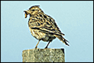 | Skylarks thrive in open meadows. They nest on the ground in tall grass. When meadows yield to subdivisions, skylarks move on. With urban sprawl, skylarks have become an endangered species. | ||||||||||||||||||