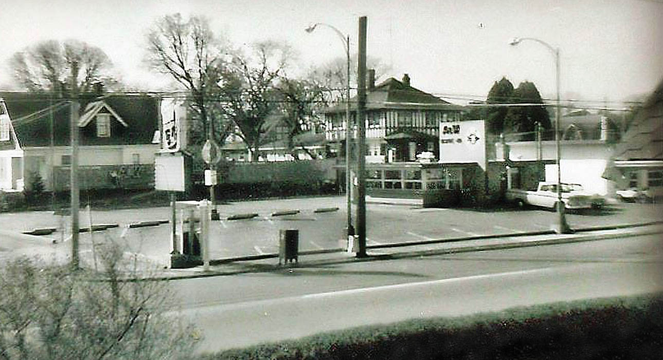 | The Oak Bay Avenue location opened in 1961 (a year after the Douglas Street location) and, although not quite in Oak Bay, immediately became the social centre for Oak Bay students out cruising on Friday and Saturday evenings. It was the place to be seen. |
