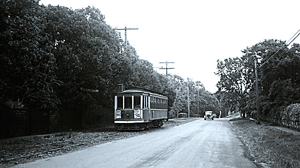 Oak Bay streetcar travelling up Newport Avenue from terminus loop at Windsor Park |