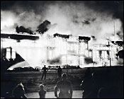 | But this ressurgence in ice-skating sports was short lived. Tragedy struck in 1944 when, for the second time in Oak Bay, an ice arena burned to the ground in a spectacular fire. The Sports Centre building, next door, was also destroyed in the blaze. |