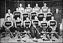 | The 1942/43 season was the high point of league action with the talented Army team almost unstoppable. They won their way to the national finals for a chance at the Allan Cup only to lose the final game to the NHL-star-studded Ottawa Commandos. By next season, as players on the service teams were being shipped overseas, team rosters thinned and leagues folded. |