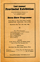 | The Willows Fair began in 1891 when the provincial agricultural exhibition relocated from Beacon Hill Park to Oak Bay. A magnificent exhibition hall* was constructed adjoining an existing racetrack (the Driving Park) to create a new recreation centre for the city the Willows. |