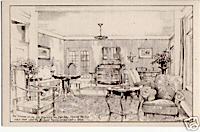 | Edward Goodall's pencil sketch, above, shows the lounge of the hotel with the inlaid desk used by Kipling to write the poem. |